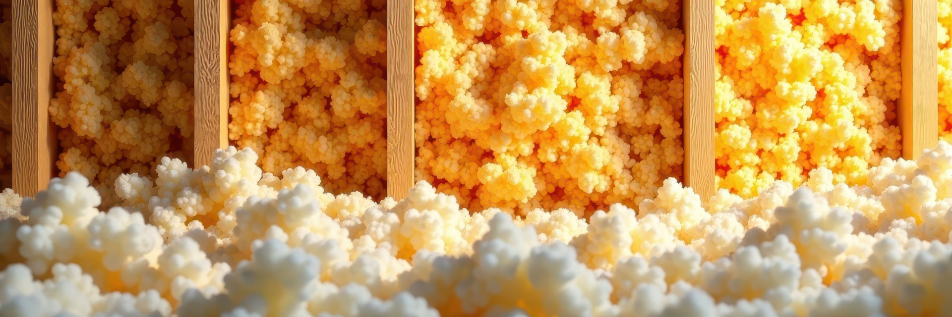 La ouate de cellulose, issue du recyclage de papier journal (jusqu’à 90% de papier recyclé), s’est imposée comme une alternative économique et performante à la laine de bois. Son coefficient lambda oscille entre 0,038 et 0,042 W/m.K selon la densité de mise en œuvre.