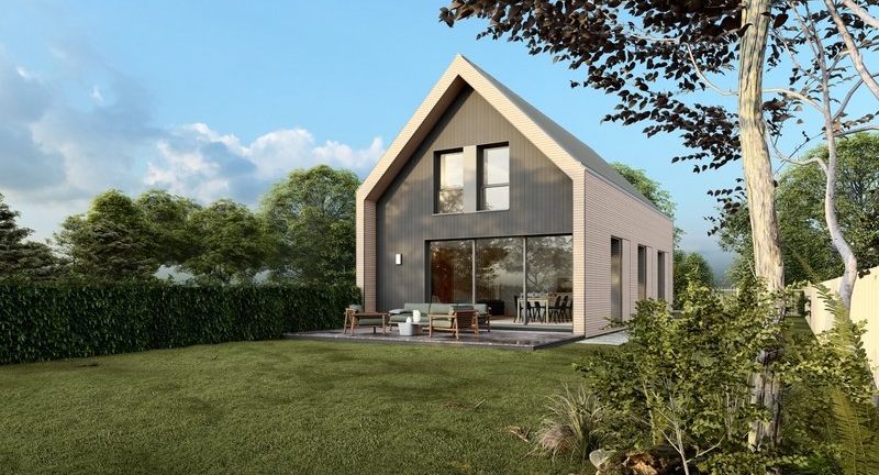A la une des opportunités immobilières, magnifique maison bas carbone en ossature bois, fabriquée dans notre usine à L'Hermitage (35).
