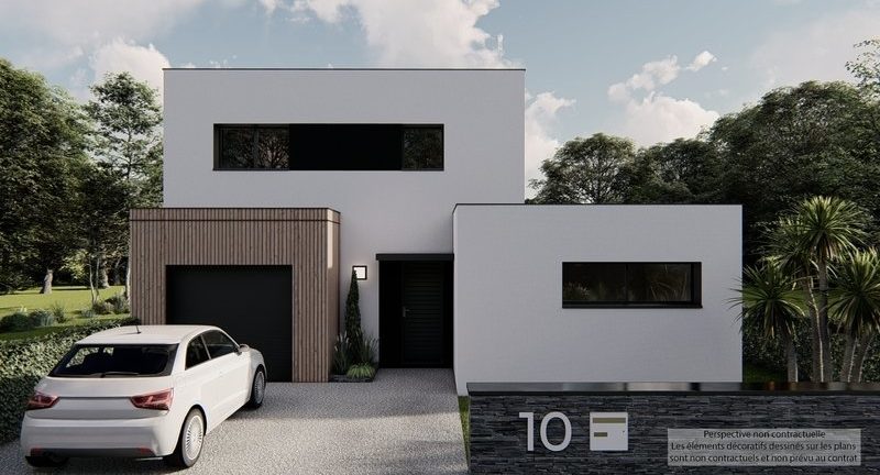 Résolument inscrite dans les tendances architecturales actuelles, cette contemporaine en ossature bois affiche des lignes modernes et épurées. Elle dispose de larges baies vitrées, inondant la maison de lumière naturelle et s'ouvrant sur le jardin. Le bardage bois qui orne la façade pour un effet naturel en harmonie avec le jardin verdoyant se combine parfaitement avec la finition enduite qui se décline en plusieurs coloris tendances.