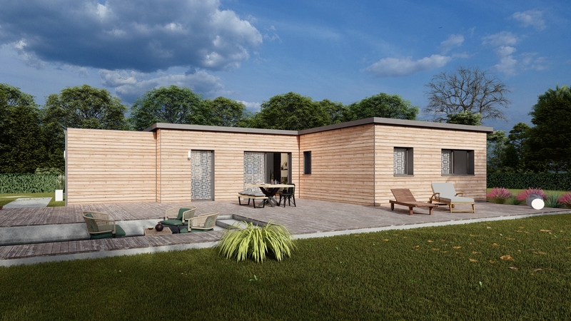 À vendre : Maison de plain-pied de 99m², avec une architecture moderne, caractérisée par son toit plat. Cette demeure offre un espace de vie généreux et bien agencé, comprenant 5 pièces.