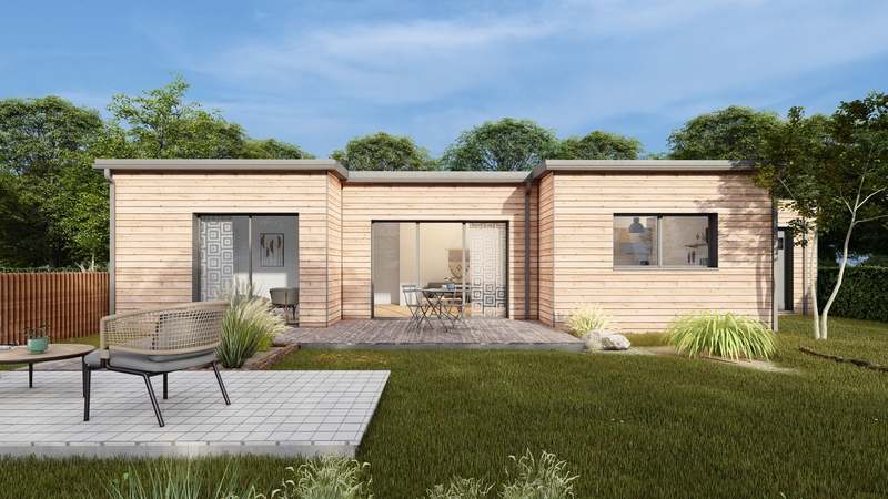 Nous avons le plaisir de vous présenter cette élégante maison de plain-pied de 100m², dotée d'un toit plat, offrant un design contemporain et une architecture moderne.