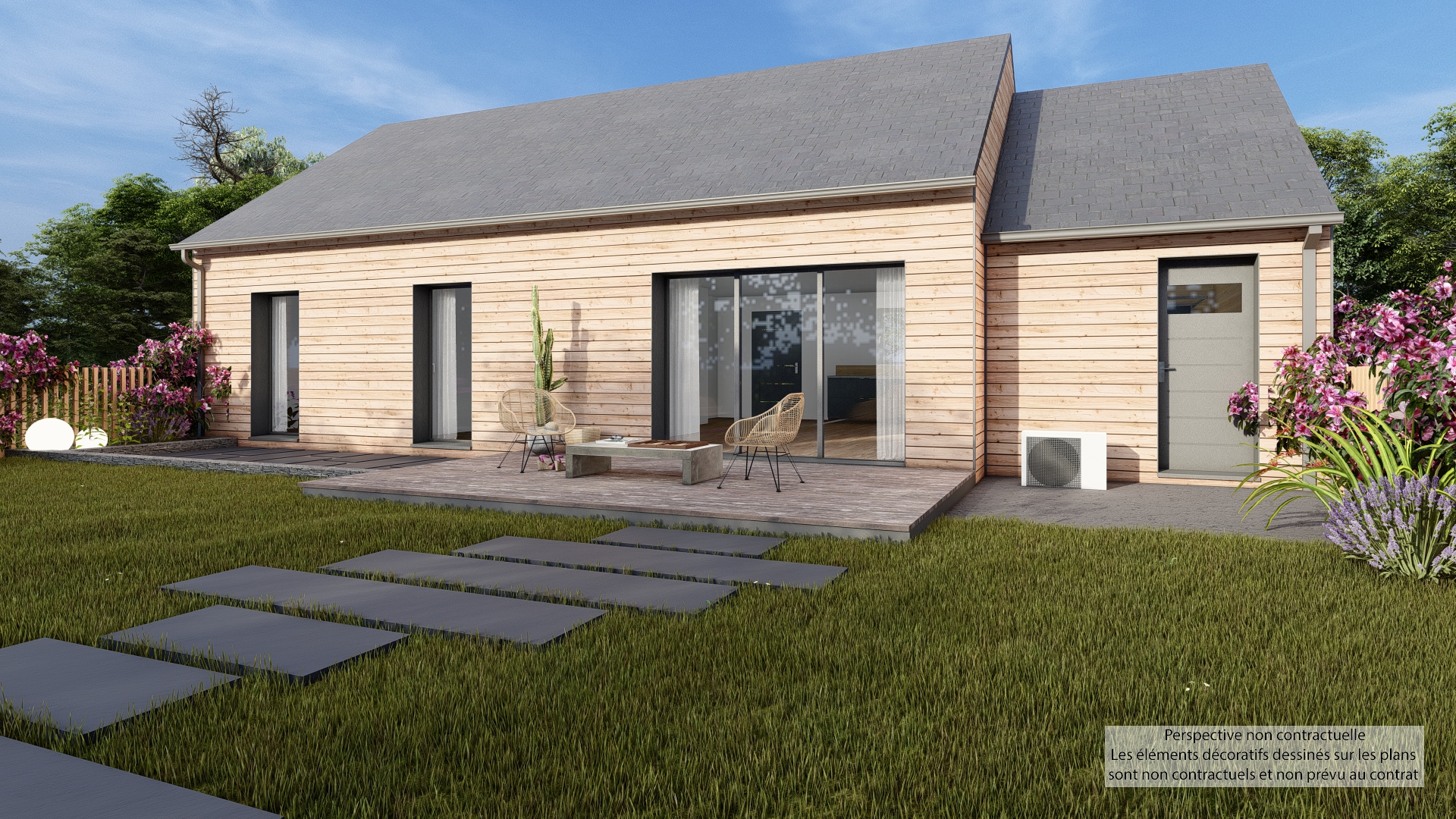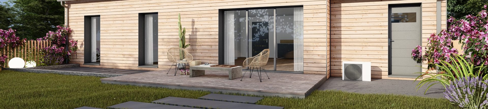 Répondant à toutes les exigences de la réglementation thermique et environnementale RE2020, et plus encore (bas carbone, matériaux biosourcés, réseau local, qualité de l'air ...), cette maison Trecobois a aussi l'avantage d'être équipée de nombreuses prestations de confort innovantes, avec notamment le principe de la maison connectée.