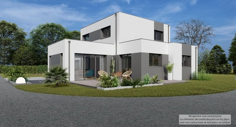Une maison à ossature bois enduite de type étage, d'une superficie généreuse de 124m². Cette maison en bois se distingue par son architecture moderne, avec une toiture de type toit plat, une tendance très en vogue dans le domaine de la construction contemporaine.