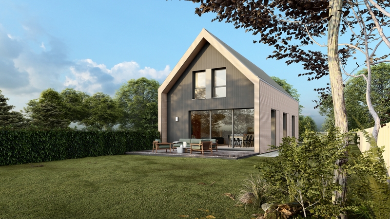 Maison neuve à construire de 130m² utiles et 115m² habitables avec 4 chambres dont 1 au rdc. Produit haute qualité pour cette construction à ossature bois et matériaux biosourcés, éco-responsable, économe en énergie, elle s'apparente à la longère du future. Chaque détail est étudié pour lui donner un style unique, gouttières intégrées, débord de toiture, etc... Elle se compose au rdc d'un hall d'entrée avec placard, une pièce de vie très lumineuse de 42m² avec un coulissant de 4,5m et cuisine ouverte, un cellier arrière cuisine, 1 chambre et salle d'eau. A l'étage se trouve 3 belles chambres, une salle de bains avec double vasque et wc séparé. Dotée de prestations dernière génération en terme de confort de vie ( maison connectée, domotique...) de performance thermique (pompe à chaleur Nibe, plancher chauffant, facture d'énergie réduite...) N'hésitez pas à prendre contact avec un de nos conseillers pour échanger sur votre projet.