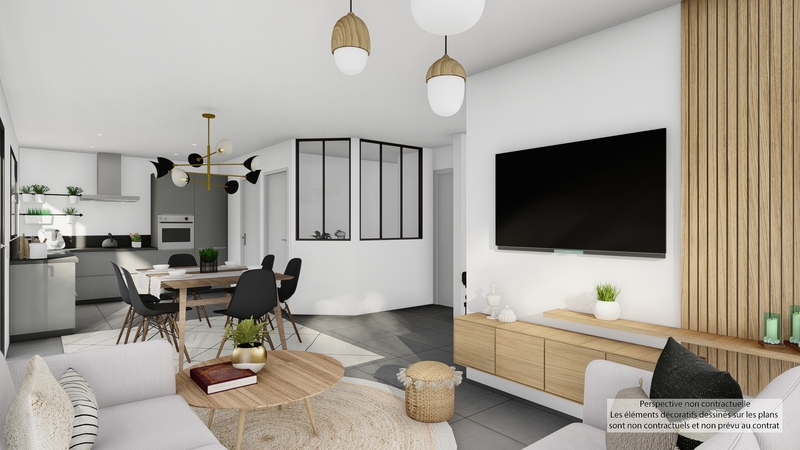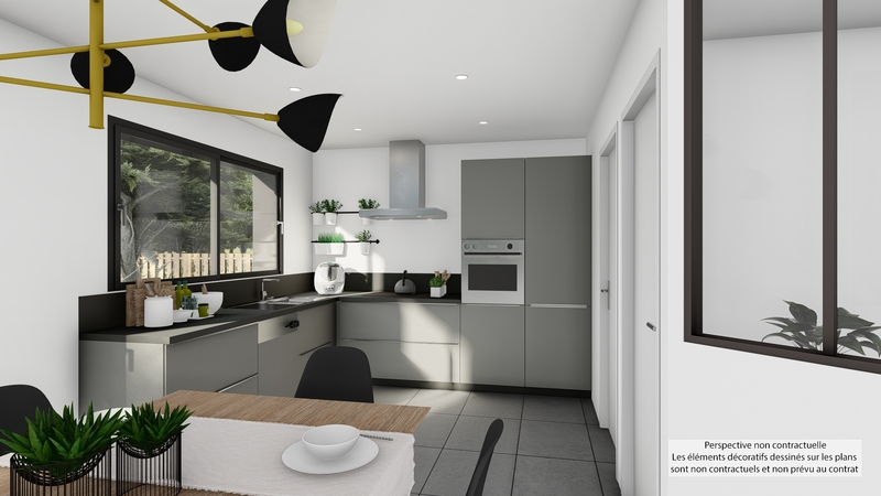 La maison se distingue par son design contemporain, caractérisé par une toiture plate qui lui confère une allure résolument moderne. L'agencement intérieur a été pensé pour optimiser chaque mètre carré et offrir un cadre de vie agréable et pratique. Les pièces à vivre sont spacieuses et baignées de lumière naturelle, grâce à de grandes baies vitrées.