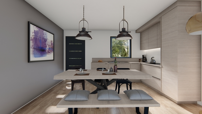 Cette maison cosy vous séduira par sa distribution des pièces bien pensée,son architecture bioclimatique sobre et épurée. L'ensemble fait la part belle à la lumière et au confort. Cette maison de plain pied à ossature bois bardé se compose d'une belle pièce de vie avec cuisine ouverte. L'espace nuit se décline en trois chambres, d'une salle de bain et WC séparé.