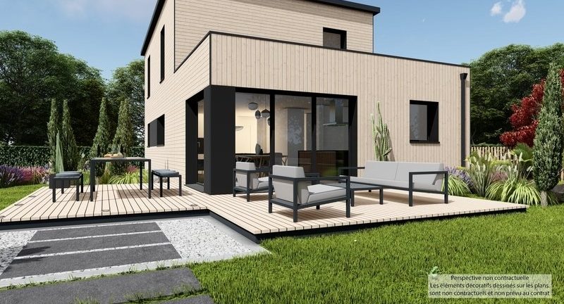 Bénéficiez du design et de la rapidité de la mise en oeuvre avec cette maison à ossature bois. A l'intérieur, la cuisine ouverte sur le salon donne une grande pièce de vie conviviale et chaleureuse. Cet espace est complété par un Atelier de 13m² et des WC. La suite parentale avec dressing et salle d'eau privative est disposée proche de l'entrée. L'étage quant à lui est réparti en trois chambres, une mezzanine, une salle de bain avec douchet et double vasque. Ceci n'est bien entendu qu'une proposition car nos maisons sont réalisées sur mesure, afin de correspondre le mieux à vos souhaits. N'attendez plus et venez nous renconter pour que nous dessinions votre maison bois Trecobois.