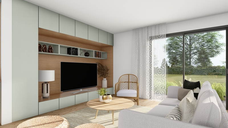 Compacte et fonctionnelle grâce à son aménagement à étage, elle s'adapte parfaitement aux terrains plus petits, optimisant ainsi l'espace extérieur.
