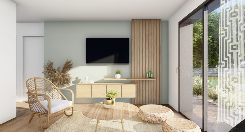Les maisons Trecobat Green réduisent l'empreinte carbone d'au moins 25% par rapport au seuil réglementaire de la RE2020. Dans le cadre de l'option panneaux photovoltaïques, la réduction sur la facture énergétique est de près de 30%. Cette donnée est calculée pour la consommation d'une maison de 105 m² avec une installation de panneaux photovoltaïques de 3 kWc sur le secteur de Brest. Étude INES réalisée en septembre 2022 sur la base des tarifs en vigueur au moment de l'étude.