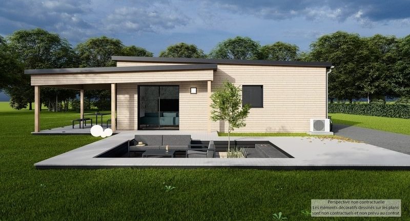 Maison 2chambres de plain pied en ossature bois avec carport abris pour intimité.