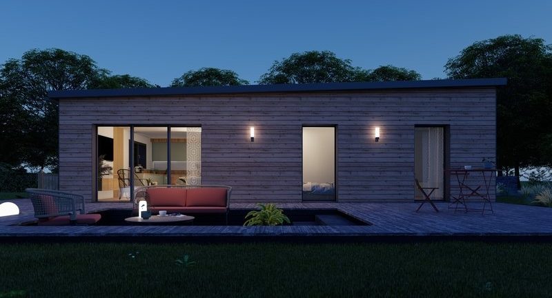 À vendre, une maison de plain-pied de 79m², dotée d'une architecture moderne avec une toiture de type toit plat, qui