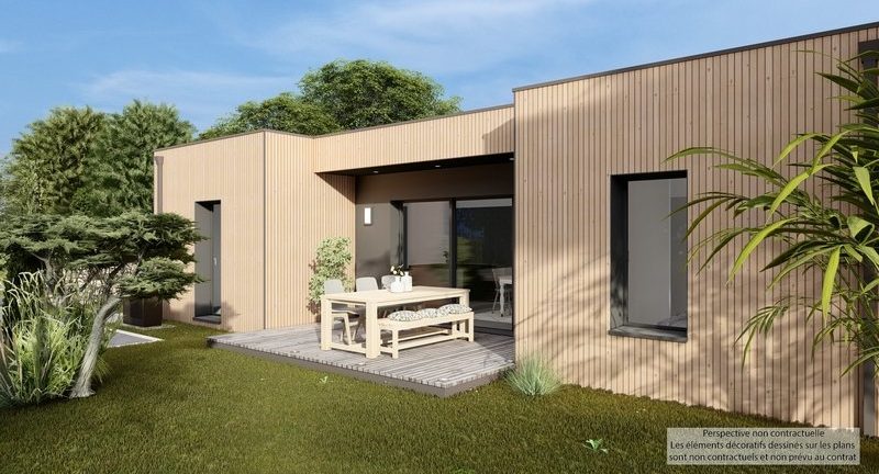 Cette belle maison bois de plain-pied, 110m², 3 chambres, 6 pièces, toit plat
