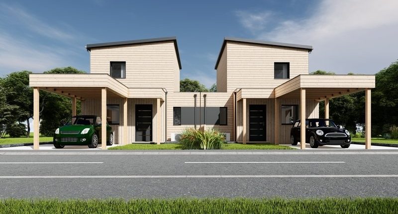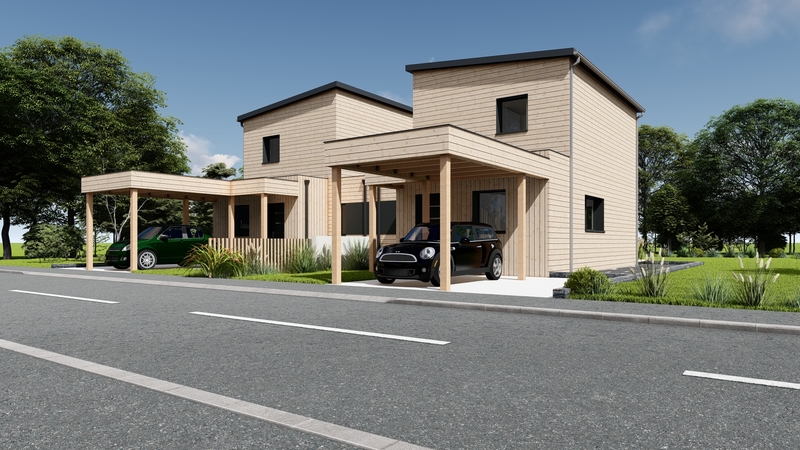 L'exemple de cette maison bois de type étage de 76m² avec toit plat