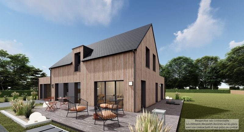 Cette maison bois de type étage de 120m² avec une toiture en ardoise.