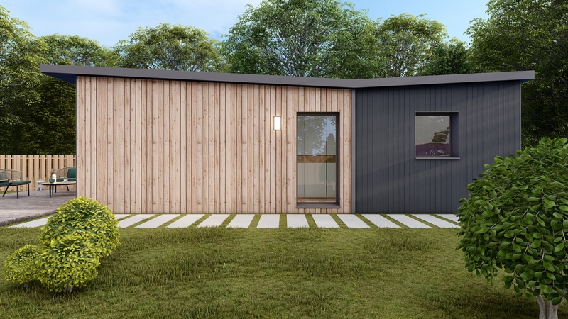 Voici notre nouveau modèle de 45 m² à ossature bois, une véritable signature architecturale qui réinvente l'habitat léger. Avec sa toiture monopente audacieuse et son jeu de façades contrasté ? mariant la chaleur du bois naturel à l'élégance du gris anthracite ? cette maison ne se contente pas d'être posée sur un terrain : elle le sublime.