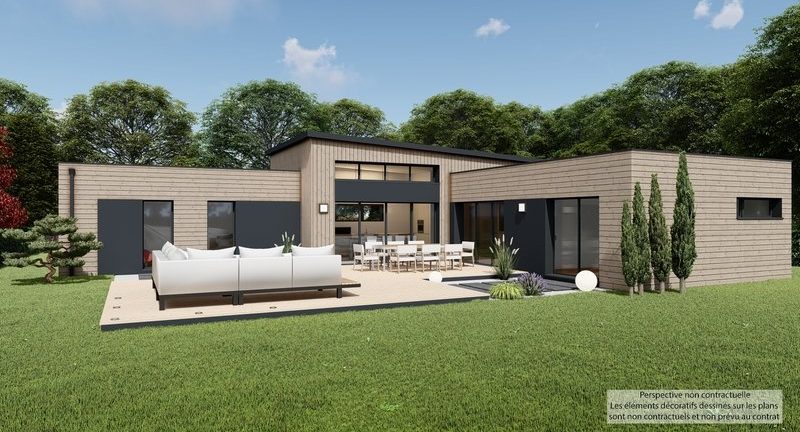 Cette maison cosy vous séduira par sa distribution des pièces bien pensée, son chauffage par aérothermie et son architecture bioclimatique et épurée. L’ensemble fait la part belle à la lumière et au confort.Maison moderne de plain-pied. Projet personnalisable composée d'une grande pièce de vie et de cinq chambres. Grand carport et garage en annexe .