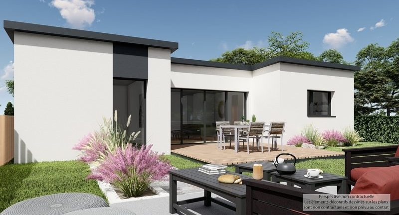 MAISON DE plain pied ossature bois enduit exterieur, composée de 3 chambres 2 salle de bains cellier cuisine ouverte sur séjour garage intégré vmi pompe à chaleur clef en main sans la cuisine label RE2020