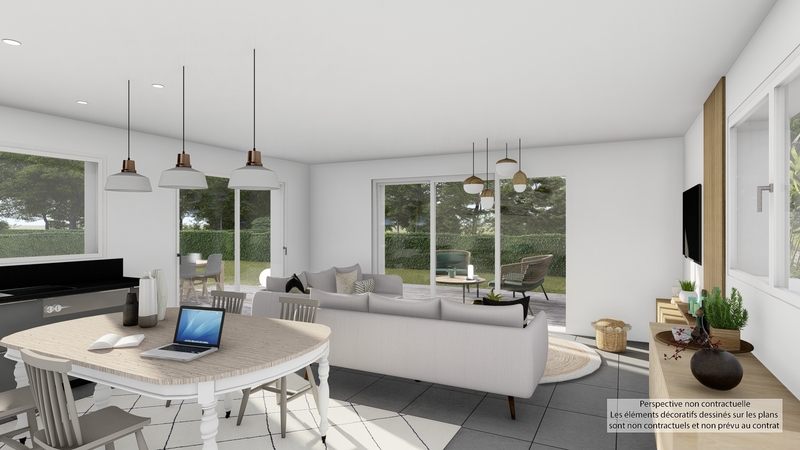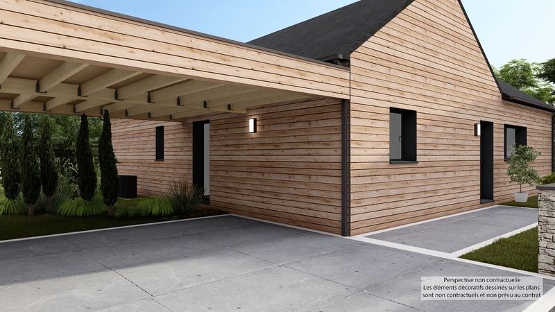 Sous une toiture en ardoises, symbole de durabilité et d'esthétisme, cette maison se compose de quatre pièces dont trois chambres. Sa conception de plain-pied facilite la circulation et rend chaque pièce facilement accessible.