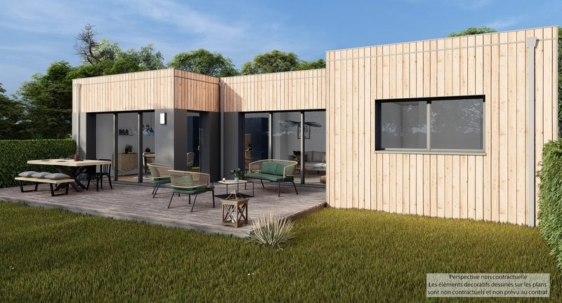 En vente, une maison de plain-pied de 107m², conçue pour allier confort et fonctionnalité. Cette demeure se distingue par son architecture moderne, caractérisée par un toit plat qui lui confère un aspect contemporain et épuré.