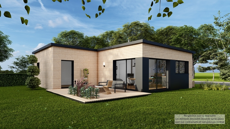 Le design de cette maison de plain-pied est résolument moderne, avec des lignes épurées et une architecture qui maximise la lumière naturelle. La toiture de type toit plat ajoute une touche de sophistication et permet une isolation optimale.
