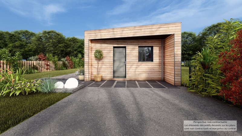 À vendre, une maison de plain-pied de 45m², idéalement conçue pour optimiser chaque mètre carré. Cette propriété se distingue par son architecture moderne avec une toiture de type toit plat, offrant un design contemporain et minimaliste.