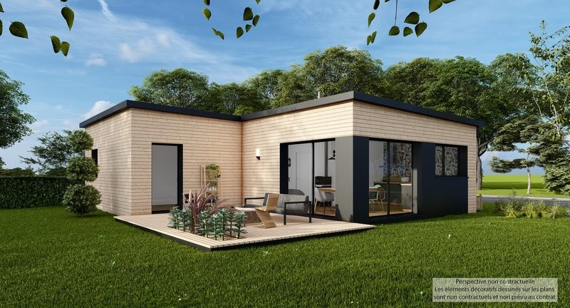 Le design de cette maison de plain-pied est résolument moderne, avec des lignes épurées et une architecture qui maximise la lumière naturelle. La toiture de type toit plat ajoute une touche de sophistication et permet une isolation optimale.