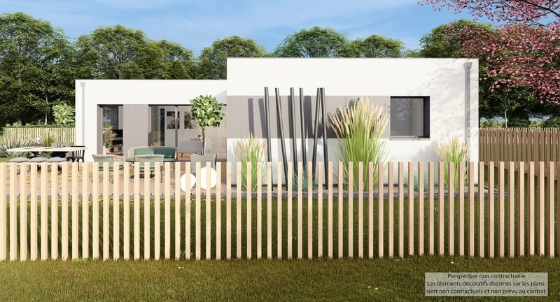 À vendre : Maison de plain-pied de 103m², un modèle de modernité et de confort. Cette propriété se distingue par son design épuré, avec une toiture de type toit plat qui lui confère une allure résolument contemporaine.
