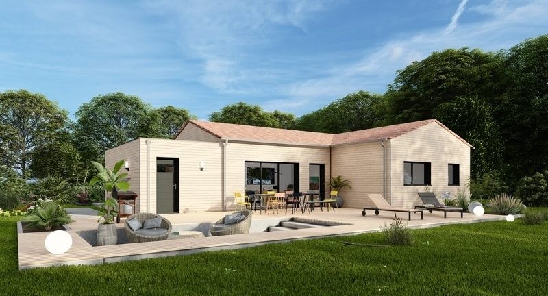Maison de plain-pied en L de 89 m² habitables confortable et contemporaine à ossature bois et bardage Douglas naturel, avec 3 chambres, grande pièce de vie et garage. PAC Air-air avec SPLITS ou possibilité plancher chauffant et rafraîchissant. Performances thermiques et acoustiques, avec un ressenti de bien-être incomparable à l'intérieur. Esthétique extérieur et organisation des pièces personalisables à souhait.