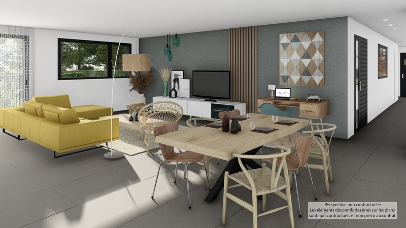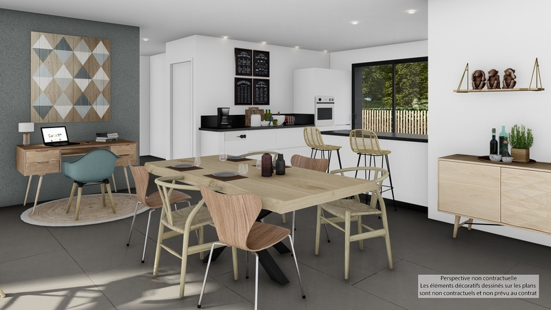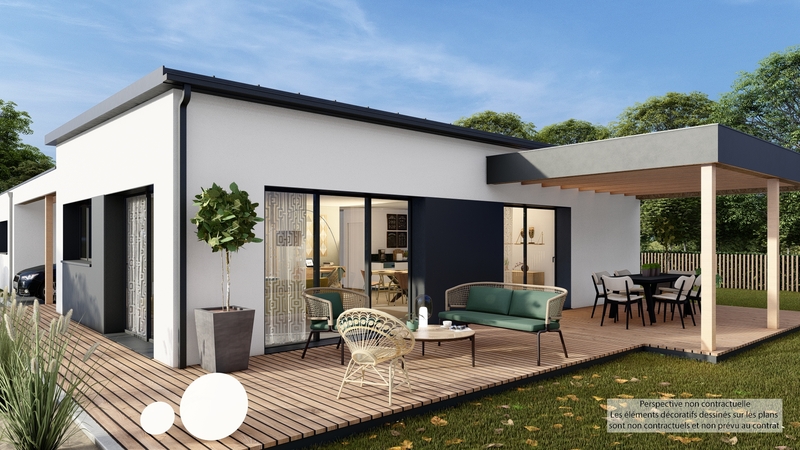 Maison design de plain-pied, écologique bas carbone et très basse consommation d'énergie à ossature bois et isolation renforcée par l'extérieur en fibre de bois enduite. D'une surface habitable de 144 m², elle est composée d'une vaste pièce de vie lumineuse de 71 m² avec cuisine US, d'un cellier, d'une entrée avec penderie et WC suspendu, de 3 chambres de 12 m² dont une suite parentale avec dressing et SDE, d'une SDB complète avec WC d'appoint, d'un carport de 42 m² et d'un salon d'été couvert. Belles prestations comprenant menuiseires gris RAL 2900, PAC PANASONIC Génération L avec plancher chauffant / rafraïchissant, ventilation Healthbox 3.0 Hydro, 8 panneaux photovoltaïques LONGI avec revente, domotique, carrelage 60x60 et imitation parquet.