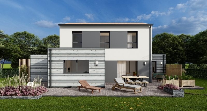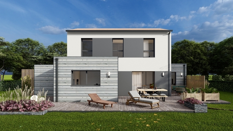 Maison contemporaine à étage partiel BAS CARBONE qui répond aux futures exigences environnementales: construction avec des matériaux biosourcés (consommation énergétique réduite à 30%), compris panneaux photovoltaïques sur toit plat et VMC connectée qui améliore la qualité de l'air intérieur. Au RDC, grande pièce de vie ensoleillée de 58 m² avec cuisine ouverte, cellier, suite parentale. À l'étage, 3 chambres, mezzanine, SDB, WC. Garage accolé, domotique, chauffage réversible. Béton de fondations décarboné, prise recharge véhicule électrique. Parties avec bardage bois LEGATO.