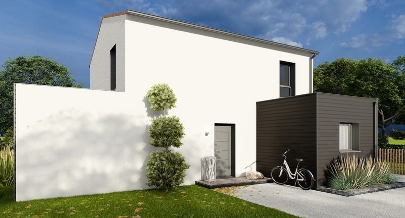 Maison contemporaine à étage partiel BAS CARBONE qui répond aux futures exigences environnementales: construction avec des matériaux biosourcés (consommation énergétique réduite à 30%), compris panneaux photovoltaïques sur toit plat et VMC connectée qui améliore la qualité de l'air intérieur. Au RDC, grande pièce de vie ensoleillée de 58 m² avec cuisine ouverte, cellier, suite parentale. À l'étage, 3 chambres, mezzanine, SDB, WC. Garage accolé, domotique, chauffage réversible. Béton de fondations décarboné, prise recharge véhicule électrique. Parties avec bardage bois épicéa noir.