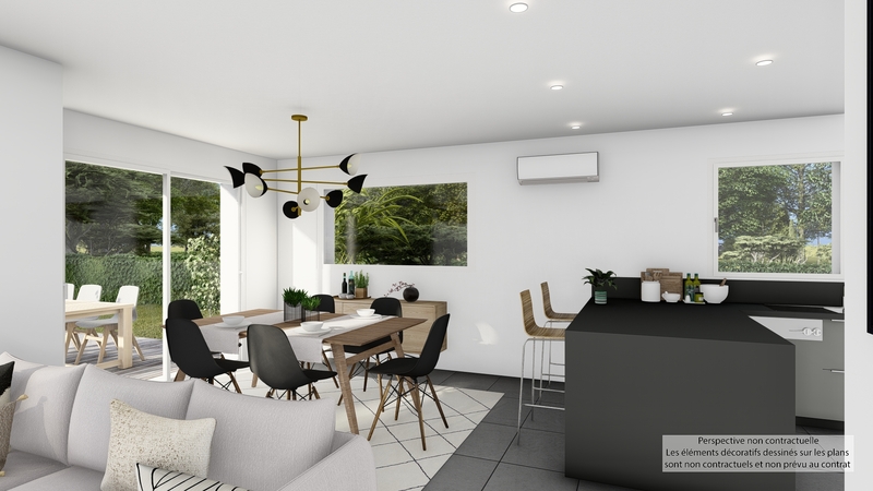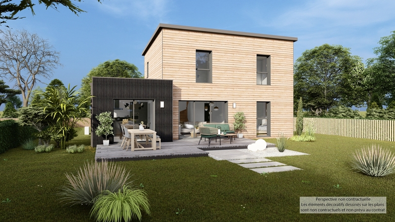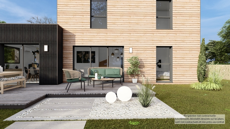 Maison contemporaine écologique bas carbone et très basse consommation d'énergie à ossature bois et bardage bois. D'une surface habitable de 108,57 m², elle est composée au RDC d'une grande pièce de vie lumineuse avec cuisine ouverte, cellier, WC suspendu, chambre parentale avec SDE privative, et à l'étage 3 chambres, SDB, WC suspendu indépendant. Belles prestations comprenant menuiseires gris RAL 2900, isolation renforcée, PAC air-air HITACHI tripe C, ventilation Healtbox 3.0 Hydro, 8 panneaux photovoltaïques LONGI avec revente, domotique, carrelage 60x60 et imitation parquet.