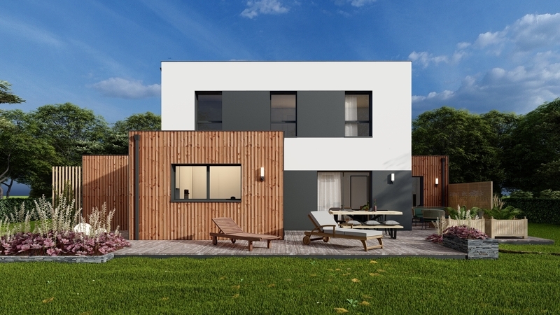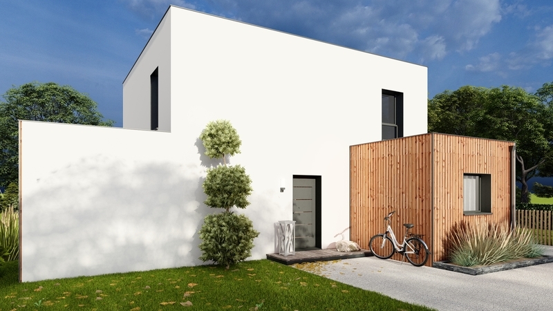 Maison contemporaine à étage partiel BAS CARBONE qui répond aux futures exigences environnementales: construction avec des matériaux biosourcés (consommation énergétique réduite à 30%), compris panneaux photovoltaïques sur toit plat et VMC connectée qui améliore la qualité de l'air intérieur. Au RDC, grande pièce de vie ensoleillée de 58 m² avec cuisine ouverte, cellier, suite parentale. À l'étage, 3 chambres, mezzanine, SDB, WC. Garage accolé, domotique, chauffage réversible. Béton de fondations décarboné, prise recharge véhicule électrique.