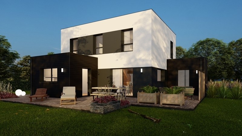 Maison contemporaine à étage partiel BAS CARBONE qui répond aux futures exigences environnementales: construction avec des matériaux biosourcés (consommation énergétique réduite à 30%), compris panneaux photovoltaïques sur toit plat et VMC connectée qui améliore la qualité de l'air intérieur. Au RDC, grande pièce de vie ensoleillée de 58 m² avec cuisine ouverte, cellier, suite parentale. À l'étage, 3 chambres, mezzanine, SDB, WC. Garage accolé, domotique, chauffage réversible. Béton de fondations décarboné, prise recharge véhicule électrique.