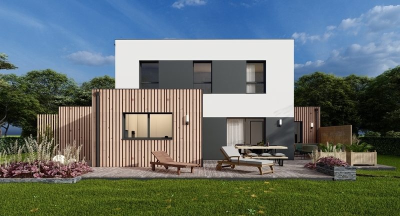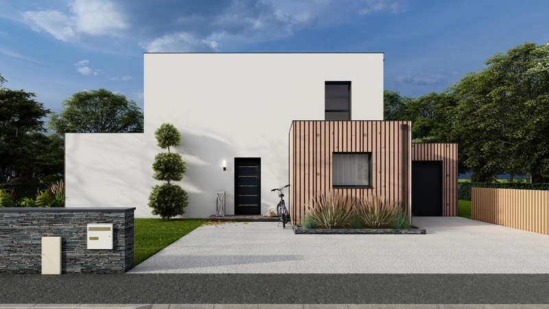 Maison contemporaine à étage partiel BAS CARBONE qui répond aux futures exigences environnementales: construction avec des matériaux biosourcés (consommation énergétique réduite à 30%), compris panneaux photovoltaïques sur toit plat et VMC connectée qui améliore la qualité de l'air intérieur. Au RDC, grande pièce de vie ensoleillée de 58 m² avec cuisine ouverte, cellier, suite parentale. À l'étage, 3 chambres, mezzanine, SDB, WC. Garage accolé, domotique, chauffage réversible. Béton de fondations décarboné, prise recharge véhicule électrique.