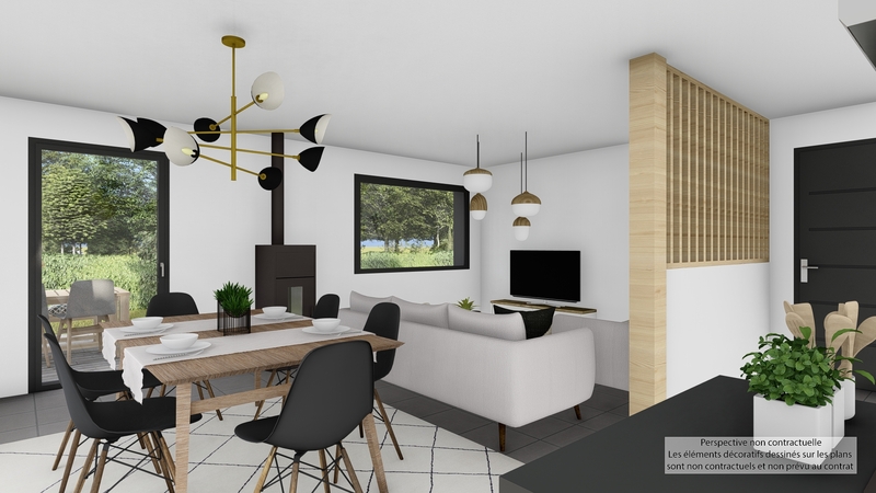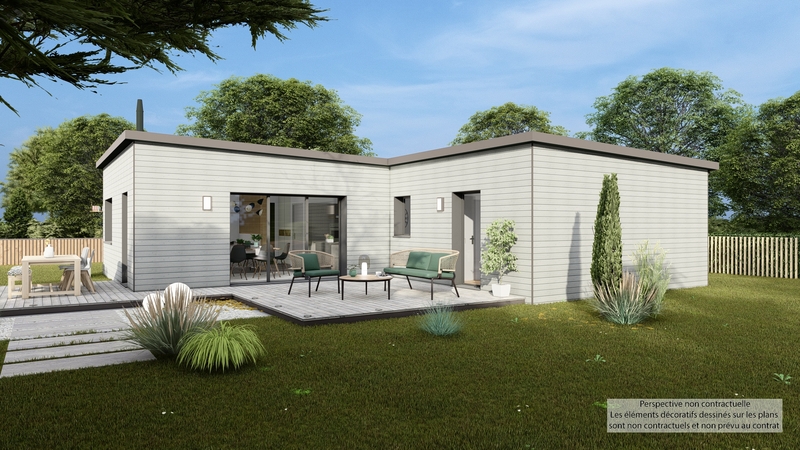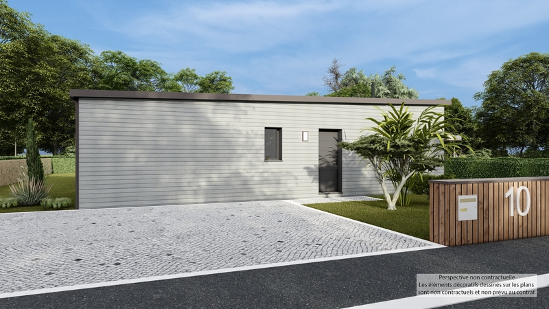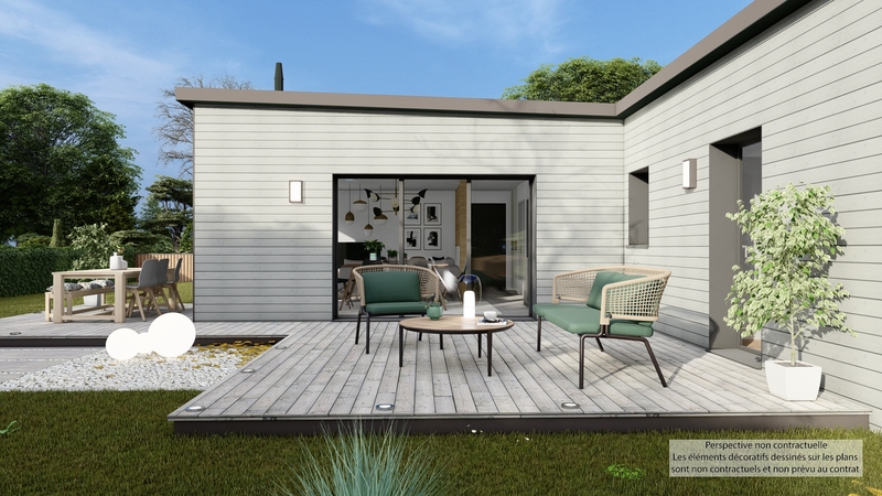 Maison design de plain-pied, écologique bas carbone et très basse consommation d'énergie à ossature bois et bardage bois. D'une surface de 98 m², elle est composée d'une grande pièce de vie lumineuse avec cuisine ouverte, d'un cellier/buanderie, d'une entrée avec prenderie, de 3 chambres dont une suite parentale avec dressing et salle d'eau, d'un espace bureau / multimédia, d'une salle de bains, d'un WC suspendu indépendant avec petite fenêtre. Belles prestations comprenant menuiseries gris RAL 2900, poële à granulés, ventilation Healthbox 3.0 Hydro, 6 panneaux photovoltaïques LONGI avec revente, domotique, carrelage 60x60 et imitation parquet.