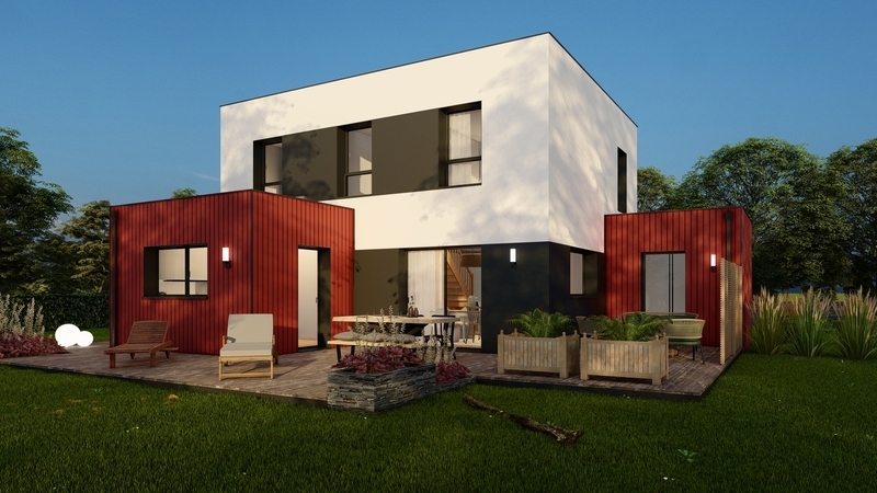 Maison contemporaine à étage partiel BAS CARBONE qui répond aux futures exigences environnementales: construction avec des matériaux biosourcés (consommation énergétique réduite à 30%), compris panneaux photovoltaïques sur toit plat et VMC connectée qui améliore la qualité de l'air intérieur. Au RDC, grande pièce de vie ensoleillée de 58 m² avec cuisine ouverte, cellier, suite parentale. À l'étage, 3 chambres, mezzanine, SDB, WC. Garage accolé, domotique, chauffage réversible. Béton de fondations décarboné, prise recharge véhicule électrique.