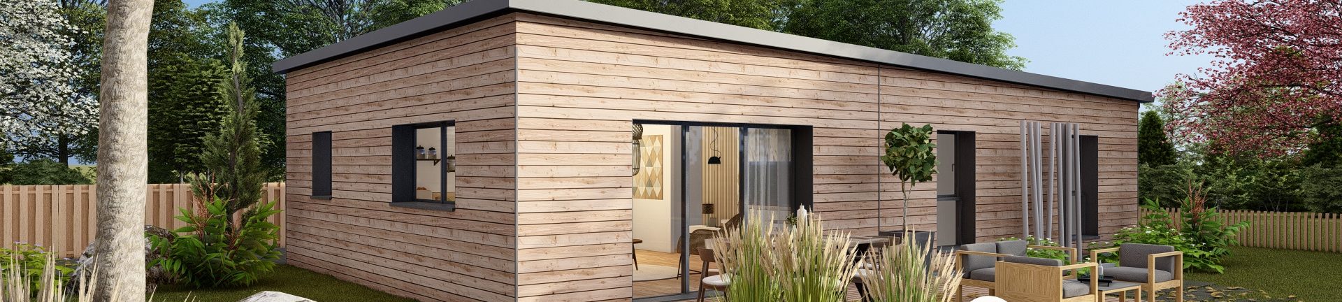 Maison contemporaine de plan-pied en ossature bois, basse consommation d'énergie et bas carbone, toiture monopente 3%. D'une surface habitable de 97,74 m², elle est composée d'une grande pièce de vie lumineuse avec cuisine ouverte et cellier, entrée avec penderie, 3 belles chambres avec placard, salle de bains complète et WC suspendus. Belles prestations: PAC Air-air multi-splits HITACHI triple C, carrelage imitation parquet, domotique, panneaux photovoltaïques avec revente.