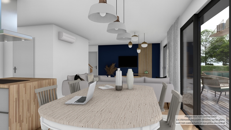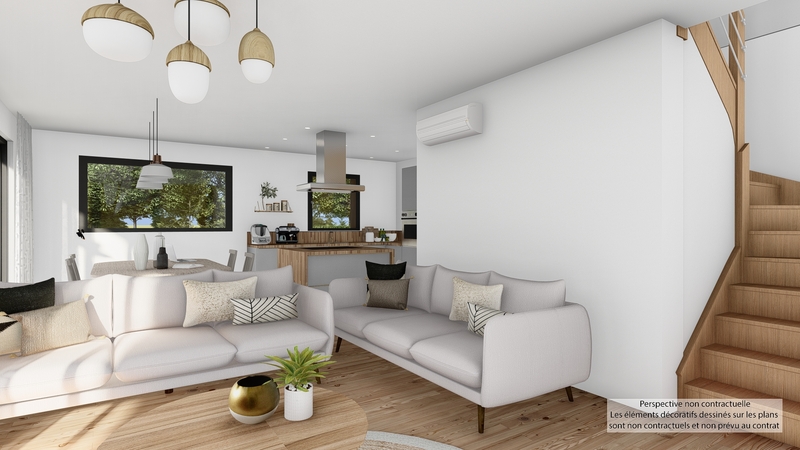 L'agencement de la maison est pensé pour optimiser chaque mètre carré. La cuisine, le salon et la salle à manger forment un espace de vie ouvert et lumineux, parfait pour les moments de convivialité en famille ou entre amis.