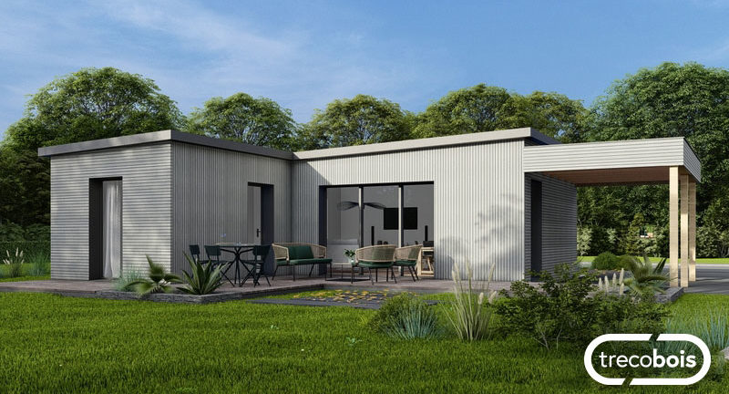 - Plan maison bois bardage gris - Plan maison bois plain-pied - Plan petite maison bois