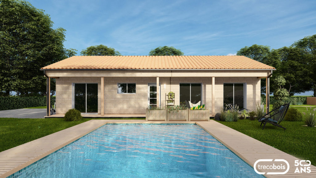 - Plan maison bois avec piscine - Plan maison bois plain pied 3 chambres - Plan maison bois plain-pied