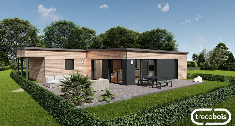 - Plan maison bois 110m² - Plan maison bois 4 chambres - Plan maison bois plain-pied