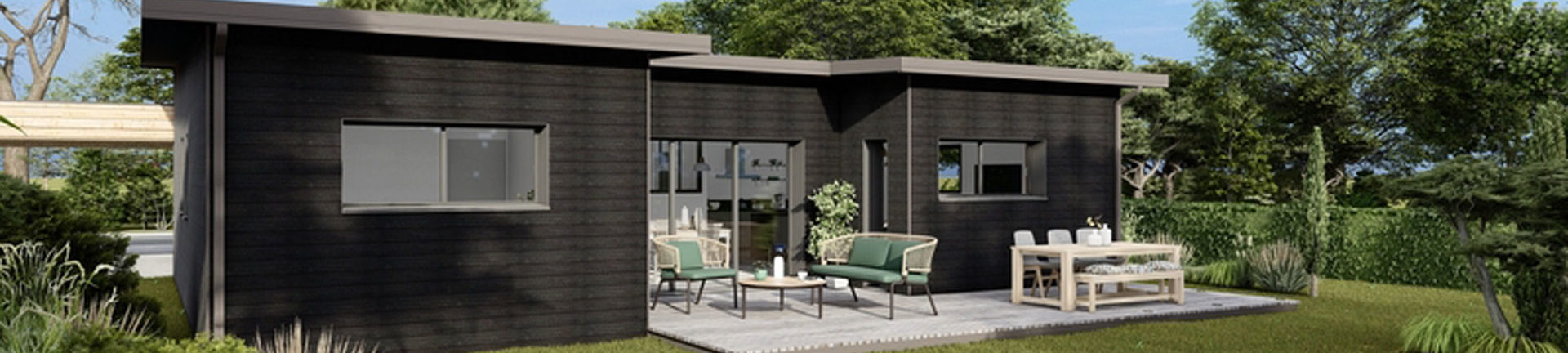 - Plan maison bois bardage noir - Plan maison bois plain-pied