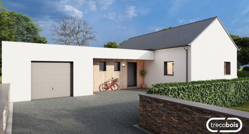Découvrez cet avant-projet imaginé par l’agence Trecobois, constructeur de maisons bois à Quimper. Ce plan de maison de plain-pied de 90m² associe le charme d’une construction traditionnelle bretonne à la performance thermique du bois.