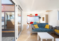 Les grandes baies vitrées et le patio apportent un maximum de lumière à l’intérieur. Cela permet également de bénéficier de la chaleur naturelle tout au long de la journée.