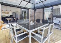 Cette maison design et fonctionnelle offre un confort intérieur réel. Notamment avec les grandes baies vitrées pour un contact permanent avec l’extérieur et un accès immédiat aux terrasses.